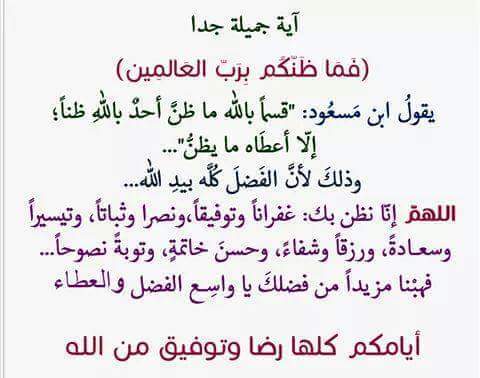 أ د نوال العيد On Twitter ف م ا ظ ن ك م ب ر ب الع الم ين يقول ابن م سع ود قسما بالله ما ظن أحد بالله ظنا إل ا أعط اه ما يظن