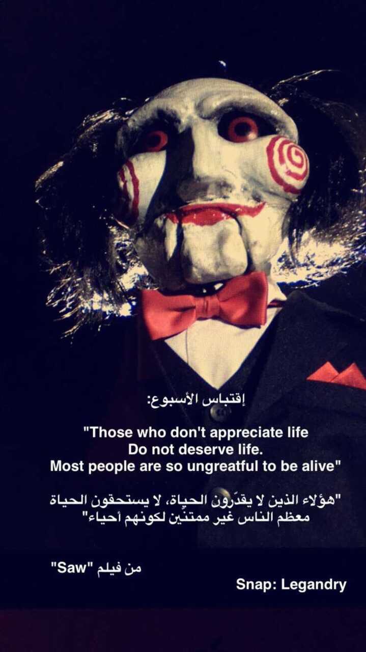 اقتباسات V Twitter ظاهره ما تعجبني فيلم Saw المشهور بدموي ته يحمل رسائل عظيمه الفلم أبعد من كونه مجرد تعذيب هنا احد اقتباساته