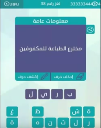 جواب لغز مخترع الطباعة للمكفوفين من لعبة وصلة المجموعة الخامسة لغز رقم 38 صقور الإبدآع